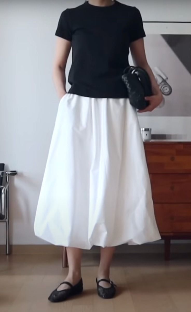 📅 2. 반팔 니트 + 화이트치마